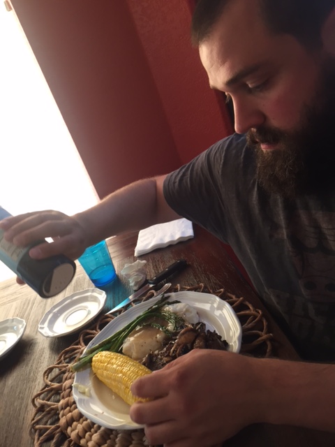 After a fun stay in the Badlands, Ryan and I made a long drive down through South Dakota and Nebraska to visit my dad’s younger brother, Greg, in Ft. Collins, Colorado. Despite giving him just a couple of day’s notice, he and my aunt Cindy and their two daughters, Madison and Olivia, and their puppy, Henry, couldn’t have been more welcoming hosts. Even though we only planned to stay one night before booking it down to New Mexico, after one dinner and lovely evening in Ft. Collins, and after promises of a fishing trip, what could we do but stay an extra night? Plus, here’s the dinner menu Greg and Cindy laid out for us in their badass home backing up to the foothills of the Rockies: homemade guacamole (Greg still uses my dad’s “famous” recipe), juicy steaks, seafood chowder, asparagus, mashed potatoes, corn-on-the-cob, fresh bread, fruit cobbler and ice cream, and rum drinks, too! Greg said he forgot the rice, we said “feed us anything else and we’ll positively explode”.