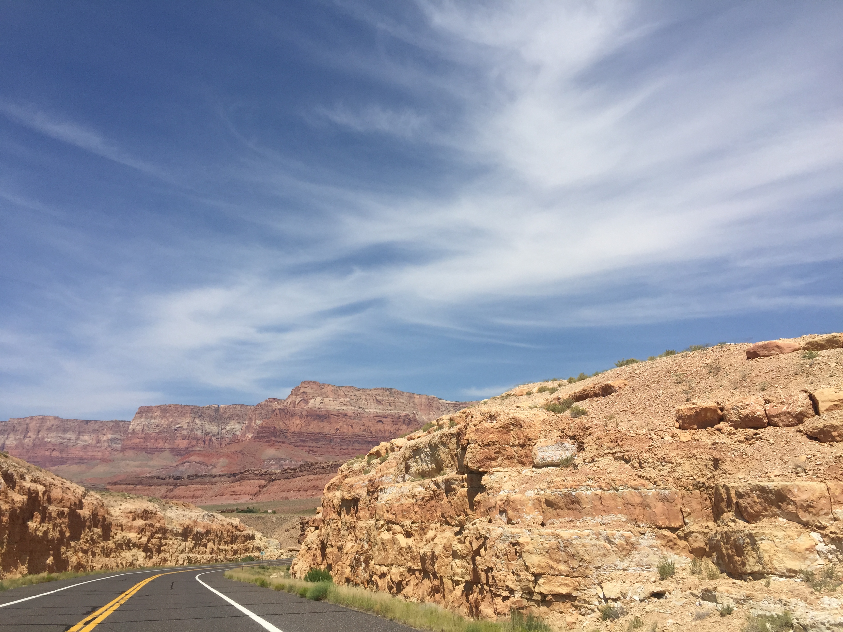 Once we headed out from the Grand Canyon, we spent the rest of the day driving up around the east side of the Grand Canyon and past the Vermillion Cliffs to get to the Dixie National Forest, where we planned to camp. The goal for our camping was to get up in the mountains between Zion and Bryce, so we’d be accessible to both, but also avoid some of the mid-summer heat. Like last year, our unfortunate timing put us back in Utah in the June/July heat, so we had to suck it up and make some plans for early-in-the-day hikes and high altitude escapes. The drive up to Dixie National Forest was, of course, beautiful, but also stark and dry, and violently orange-y red. Ryan had been saving up the soundtrack from the new Mad Max to play once we made it to this brutally pretty part of our trip. So we barreled through these wild views head banging to the eerie, crunchy, base heavy sounds of Mad Max.