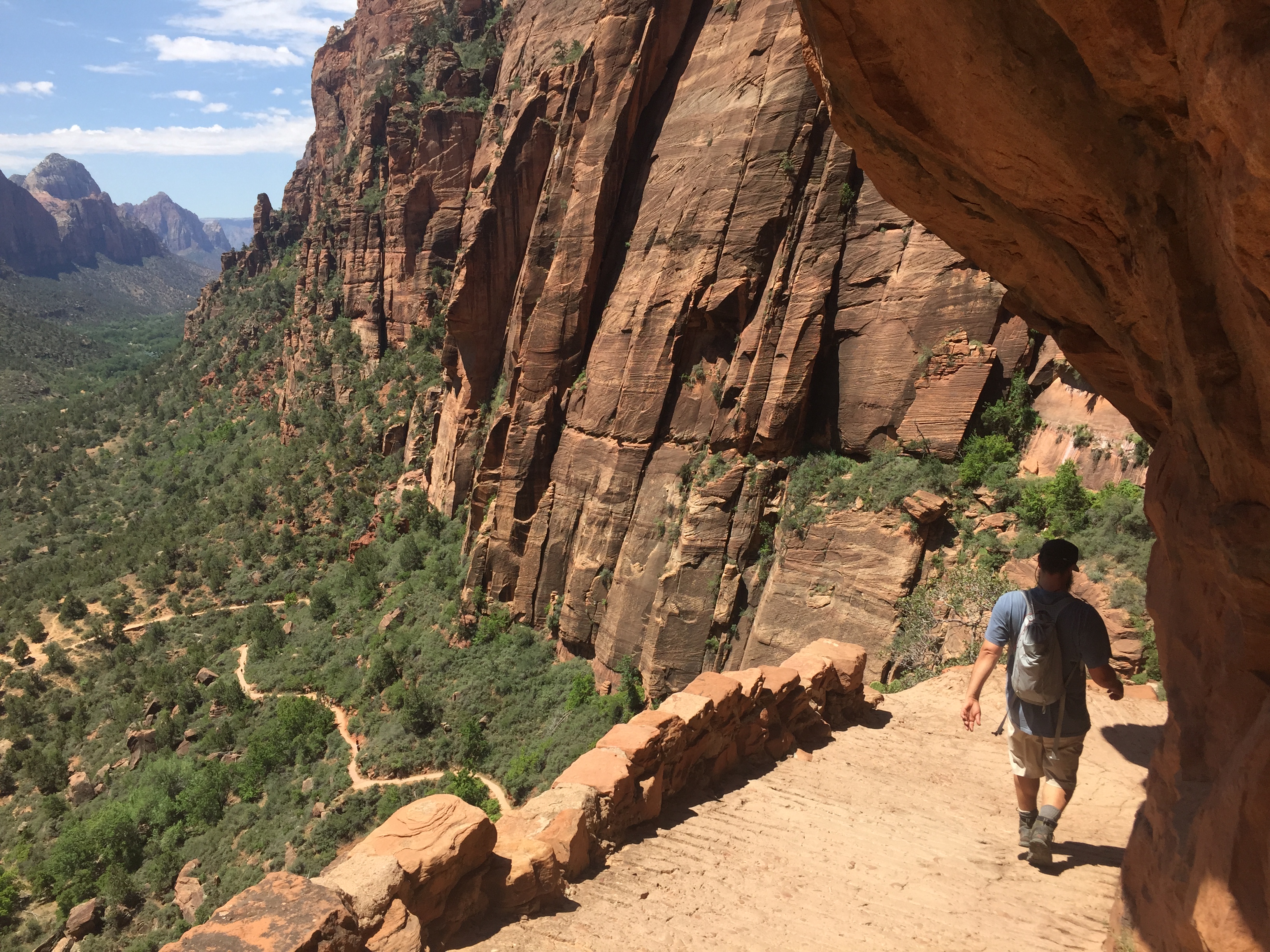 We made it up to the most severe part of this infamous trail. Signs greet you, warning, “six people have died on this trail since 2004,” and telling you that you should be prepared with good shoes and not push yourself beyond your own comfort level. I figured some of this was just common sense, thinking it couldn’t be that big of a challenge, but was surprised to find the trail was actually pretty tough and not a little scary. This was all made much worse by the unending stream of hikers that made what was basically a one way trail a constant stop-and-go affair. Many times I was stuck in a pretty awkward, not super safe corner of the trail, in order to let people coming the other way pass through. At a certain point, Ryan, who isn’t particularly comfortable with great heights, extreme sports, or idiot tourists rushing along 1,000 foot drop offs, decided the last mile of the narrow, winding trail was not for him. He very patiently made his way partly down the trail to wait in the shade, so that I could push on. It was way less fun to keep going without him, but I kept on. There was a fair amount of semi-climbing/scrambling, and by the time I made it up, the heat of the day was starting to set in, the crowds were really unpleasant, and I definitely starting to feel some exhaustion in my arms and legs. Totally glad I did it, the views were stunning the whole way, but was also very happy to get back down to Ryan. His passionate kiss upon greeting me made me feel like a returning war hero. Would love to attempt this trail again in the offseason, much earlier in the day, but happy I got to give it a shot this summer.